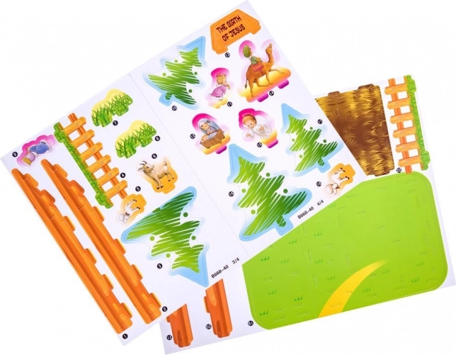 Set sadrži sve izrezane dijelove za izradu šarene betlehemske scene. Idealno kao brzi poklon ispod bora.