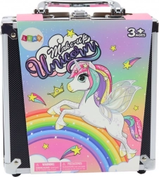 Elegantni kozmetički set u crnom kovčežiću razveselit će svaku malu ljubiteljicu šminke i manikure. Sadrži šarena sjenila za oči (mat, satenska i brokatna), lakove za nokte, glitere i praktične dodatke. Lagani i lako prenosivi kovčežić idealan je za putovanja i igru s prijateljicama. Sjajan poklon za djecu 3+, potiče kreativnost i finu motoriku.