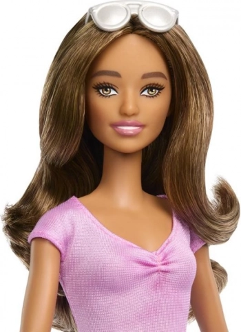 Lutka nosi ružičastu satensku bluzu i sjajnu slojevitu suknju, vrlo ugodnu na dodir. Lavandine cipele s petom ovom očaravajućem outfitu daju jedinstven stil. Srebrne sunčane naočale ne samo da izgledaju moderno, već štite lutkine oči od UV zračenja tijekom sunčanih dana.