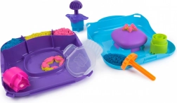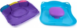 Set KINETIC SAND Pokretni kalupi donosi jedinstven način da vaši uradci „ožive”. Naspite i poslažite ružičasti, žuti i plavi pijesak u kutiju, poravnajte ga nazubljenom špatulom, a zatim uz alat za prešanje i pečate izradite motive. Pritiskom na pjenastoj podlozi uzorci se počinju micati i mijenjati – rezultat je fascinantan, a zabavi nema kraja.