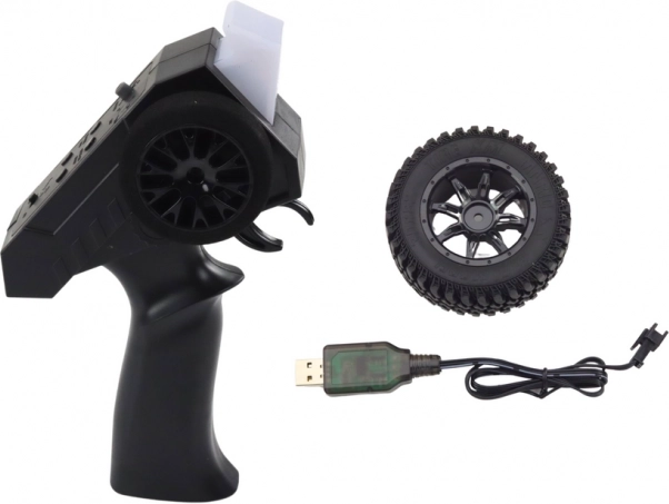 Model je dizajniran za dugu zabavu: velike gumene gume za izvrsnu trakciju, metalni amortizeri za glatku vožnju i LED rasvjeta za realističan izgled i pri sumraku. Napajanje iz Li-ion akumulatora 7.4V 1200 mAh (uključen) s punjačem, upravljač zahtijeva 2× AA (nisu uključene).