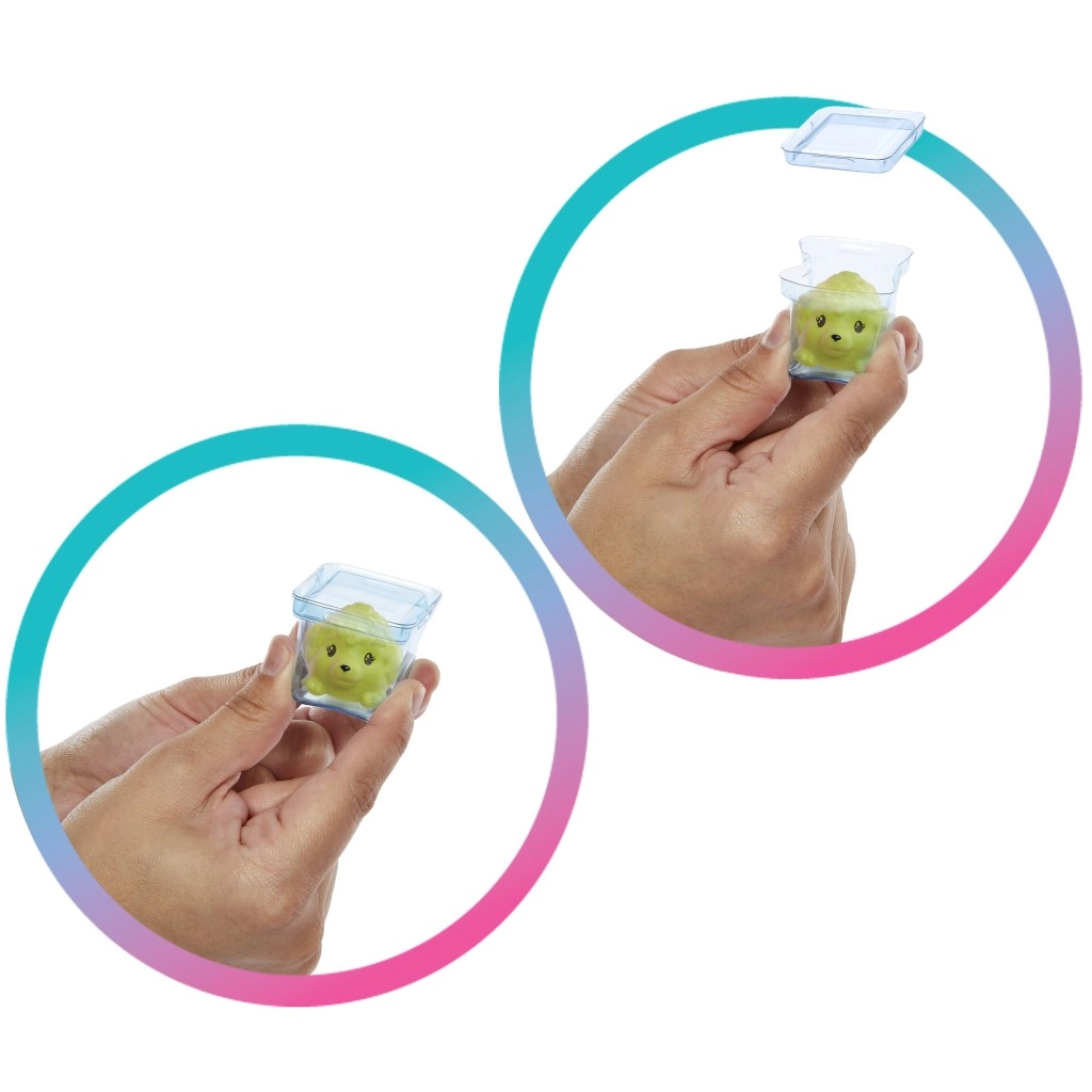 Lutke Barbie Pop Reveal Bubble Tea donose razigrano raspakiravanje korak po korak: odvijte poklopac s obojenim slimeom, probušite foliju slamkom i otkrijte lutku s blagim mirisom bubble tea napitka. Svako pakiranje skriva tematske elemente inspirirane omiljenim okusima – od mliječnog čaja preko voćnog užitka do zelenog čaja i mangovih kolačića.
