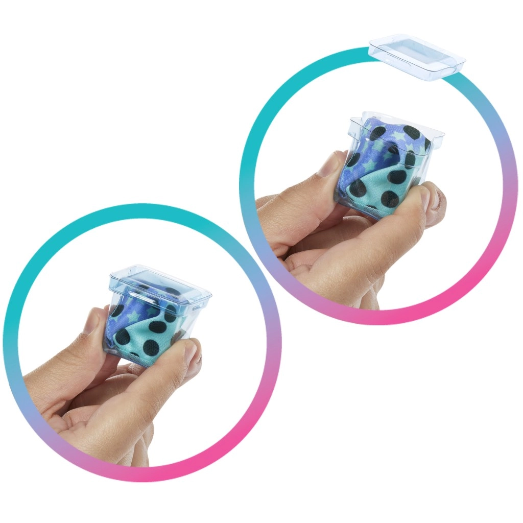 Nastavite s otkrivanjem: u višekratno upotrebljivim “ledenim” kockama pronaći ćete suknju i cipele, a u tajanstvenim vrećicama slamku, novčanik i plišanu, mirisnu životinjicu. Za dodatnu zabavu tu je promjena boje na licu lutke. Cijeli set potiče razvoj mašte, fine motorike i osjetilne percepcije.