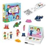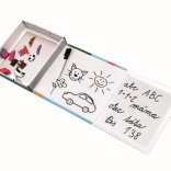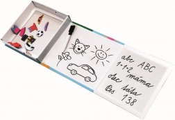 Omogućuje kombiniranje pisanja, brisanja i slaganja magnetskih sličica u jednom setu. Ovaj je set idealan za vježbanje pisanja slova i brojeva, a ujedno nudi puno slobodne površine za crtanje markerom koji se može brisati.