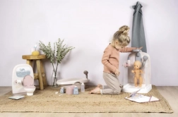 Uključuje držač za ručnike i kuke za ogrtače, što djeci omogućuje realističnije iskustvo.