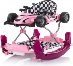 Hodalica 4u1 Car Racer Pink idealan je pomagač za djecu od 6 mjeseci do 12 kg koja već samostalno sjede. Kombinira funkcije hodalice, ljuljačke, centra za igru i guralice za prve korake. Trkaći dizajn s odvojivim panelom u obliku formule odmah će privući djecu i motivirati ih na kretanje.