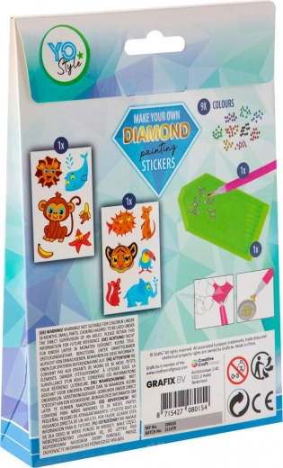Dijamantno slikanje – 12 naljepnica sa životinjicama. Komplet sadrži 9 boja kamenčića, aplikator, vosak i posudicu. Jednostavno stvaranje za djecu i odrasle.