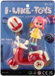Lutka na skuteru savršen je izbor za svu djecu koja vole avanture. Skuter je izrađen od izdržljive plastike i dostupan je u četiri boje kako bi zadovoljio različite preferencije. Lutka je odjevena u ljetnu odjeću, a zajedno sa skuterom pruža sate zabavne igre.