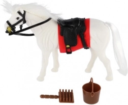 Plastični konj s površinskom obradom baršunom donosi realizam u svijet igre. Dodaci poput sedla i ulara omogućuju kreativnu i zabavnu igru, dok djeca otkrivaju čaroliju brige o konjima. Pogodno za djecu od 3 godine, što ga čini sigurnim i privlačnim izborom za najmlađe kolekcionare.