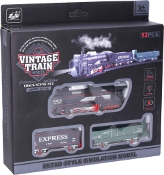 Doživite avanturu na tračnicama s ovim vlakovnim setom s efektima. S dimenzijama željeznice 68x68 cm pruža dovoljno prostora za vožnju i igru. Lokomotiva duljine 13 cm i vagoni duljine 9-11 cm dizajnirani su za maksimalnu zabavu. U setu se nalazi lokomotiva i dva vagona, što je idealna kombinacija za duža putovanja.