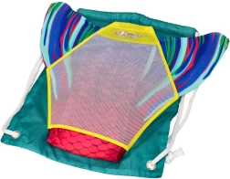 Praktična tekstilna vreća za plivanje s motivom morske sirene idealna je za bazen i plažu. Zahvaljujući mrežastom dijelu brzo se suši, lagana je, izdržljiva i lako se prenosi. Jednostavno zatezanje uzicom, prozračan materijal i zaigran dizajn KUAKI MERMAIDS čine je odličnim izborom za djecu i tinejdžere.