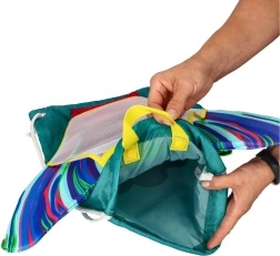 Stilská vreća s morskim motivom pomoći će vam udobno prenositi plivačku opremu – od repa/monoperaje do kupaćeg kostima i ručnika. Prozračni dijelovi omogućuju brzo sušenje nakon upotrebe, pa sadržaj ne ostaje dugo vlažan.