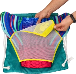• Idealna za bazen i plažu – čuva kupaći kostim, morski rep i sitnice.