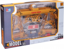 Ova realistično izvedena portalna RC dizalica djeci pruža uzbudljivo iskustvo gradnje. Daljinsko upravljanje omogućuje vožnju naprijed i nazad, okretanje na mjestu i precizno podizanje i odlaganje tereta. Set sadrži kontejner, kantu za utovar, bačve, trupce i čunjeve za autentične scenarije na gradilištu.