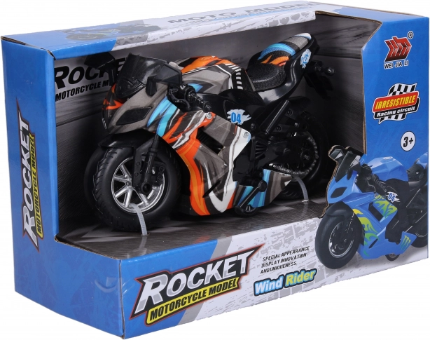 Zabavan motocikl na inercijski pogon duljine 16 cm oduševit će male i velike ljubitelje brze vožnje. Zahvaljujući mehanizmu za povlačenje unatrag, dovoljno je motocikl povući i pustiti – sam će krenuti naprijed. Kompaktne dimenzije i izdržljiva izrada idealne su za kućne utrke i putovanja. Dostupno je više varijanti boja i jednostavno upravljanje bez baterija.