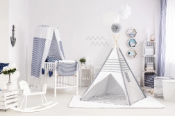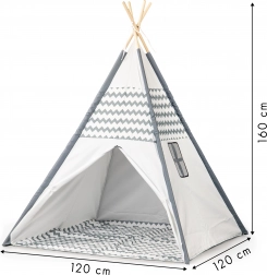 Stilski dječji teepee šator ECOTOYS pretvara svaku sobu ili vrt u sigurno utočište za igru i maštu. Nudi tekstilnu podnicu, rolajući zatvorivi ulaz, perivu navlaku i brzu montažu. Zahvaljujući čvrstoj drvenoj konstrukciji prikladan je za unutarnju i vanjsku upotrebu te pruža satima zabave za jedno ili više djece.