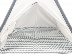 Sastavni dio je cjeloplošna podnica koja povećava udobnost i omogućuje upotrebu i na terasi ili u vrtu. Rolajući i zatvorivi ulaz djeci daje osjećaj privatnosti, a navlaku je moguće jednostavno očistiti. Montažu ćete savladati za nekoliko minuta – šipke se jednostavno spoje i zavežu u gornjem dijelu.