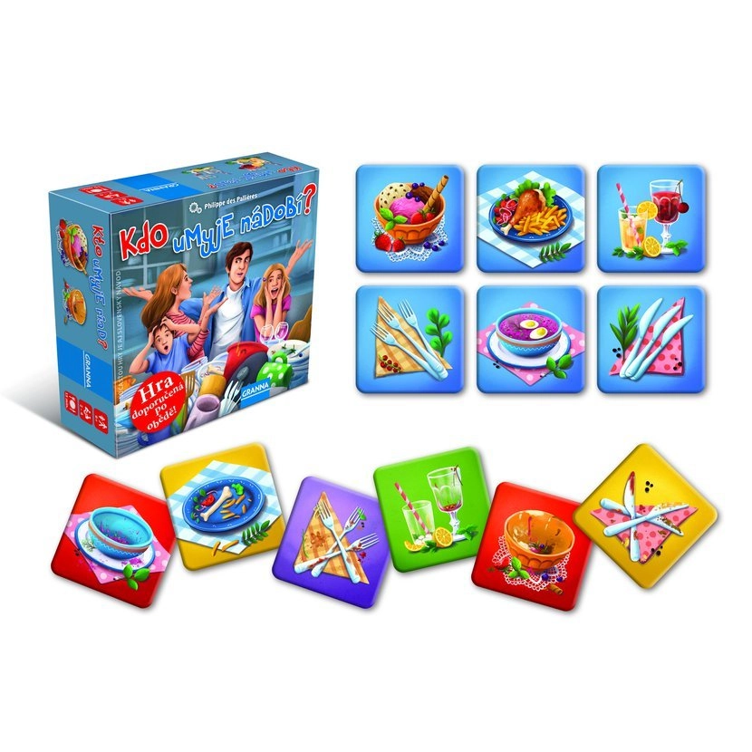 Zahvaljujući ovoj brzoj i zabavnoj igri opažanja više se ne morate prepirati tko će oprati suđe; o tome odlučuje ishod igre, čiji je cilj što se brže riješiti kartica s prljavim suđem. Zabavna igra ne samo da vježba opažanje, brze reakcije i sposobnost koncentracije, već rješava i neugodnu obvezu nakon ručka…