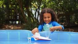 Najveća zabava je vodeni top s mehaničkom pumpom, koji doista šprica vodu. Dovoljno je zagrabiti vodu i pumpati – intervencija je spremna! Čamac je izrađen od kvalitetne plastike, ima žive boje i izdržljivu izradu za dug vijek trajanja. Osim toga, na trup je moguće pričvrstiti mali katamaran (nije dio pakiranja) i tako proširiti scenarije igre.