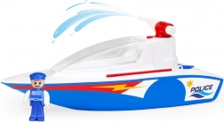 Ovaj robusni policijski čamac LENA stvoren je za vodene avanture – odlično pluta u kadi, dječjem bazenu i na moru. Zahvaljujući otvorivoj kabini s dva sjedala djeca lako odigravaju napete scenarije i kreću u patrolu s priloženom figuricom policajca.
