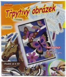 Uživajte u kreativnom procesu i pustite svojoj mašti na volju. Dovoljno je nježno odlijepiti zaštitnu foliju, posipati sjaj na ljepljive dijelove i stvoriti svoje jedinstvene sjajne crteže. Obogatite svaki komad svojim idejama ili slijedite priložene upute: