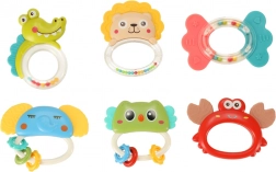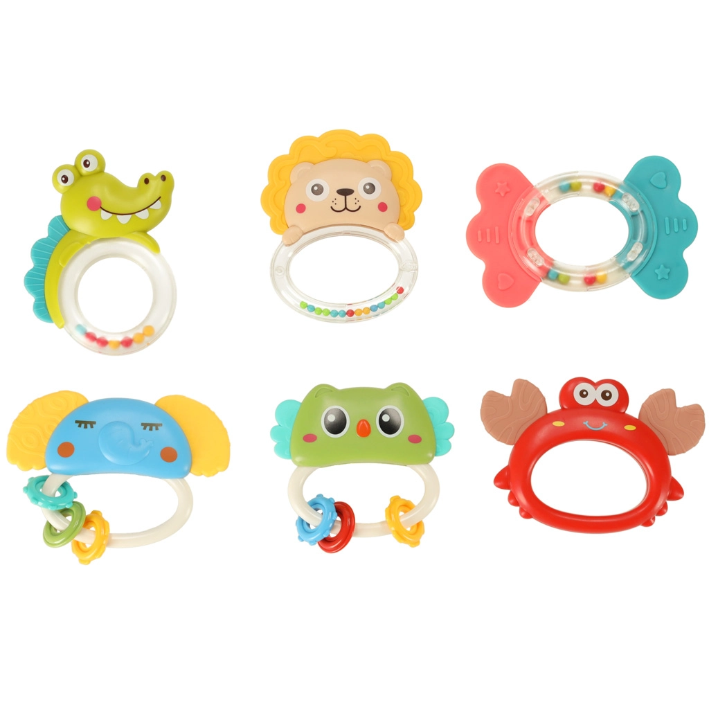 Ovaj raznobojni set 6 senzoričkih zvečki i grickalica idealan je pratitelj od prvih dana bebe. Svaka igračka privlači jedinstvenim oblikom i bojom, a zahvaljujući mekim rubovima služi kao nježna grickalica tijekom nicanja zubića.