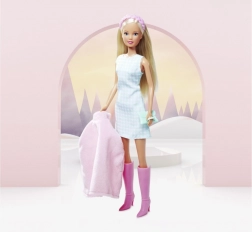 Otkrijte bezvremenski stil lutke STEFFI LOVE s više od 30 godina tradicije. Ova modna ikona obožava elegantne outfite i moderne frizure. U izdanju Cape Fashion blista u mekoj, plišanoj pelerini, nježno plavoj haljini s pepito uzorkom te usklađenim ružičastim dodacima – rajfom, čizmicama i malom pismo-torbičicom.