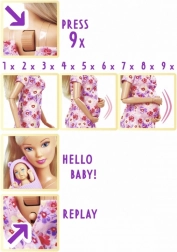 Jedinstvena funkcija rastućeg trbuščića: nakon devetog pritiska gumba beba se “rađa”. Postupak se može lako resetirati i ponovno proživjeti.