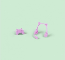 Dio kompleta su upečatljive slušalice s ušima i mali igraći kontroler – idealni rekviziti za gamerske priče i digitalne pustolovine.