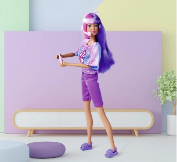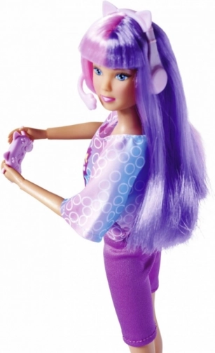 Otkrijte gamerski stil sa STEFFI LOVE u izdanju Gamer Girl. Lutka ima ekstra dugu, jarko ružičasto‑ljubičastu kosu koja poziva na češljanje i izradu frizura. Savršeni outfit s piksel motivom nadopunjuju kultne slušalice s mačjim ušima i ljubičasti kontroler – spremno za svaku virtualnu pustolovinu.