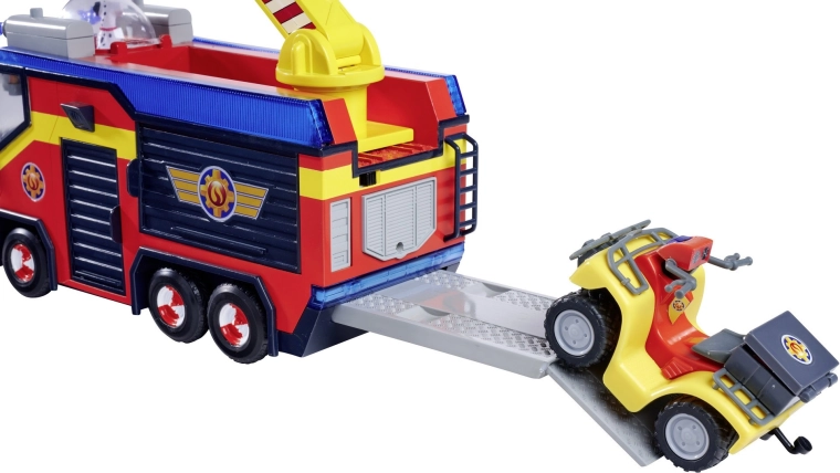 Licencirano vozilo Vatrogasac Sam je vatrogasna igračka koja je kompatibilna i može se proširiti dodatnim figuricama, stanicama ili vozilima – primjerice, četverokotač Vatrogasca Sama može se parkirati na izvlačnoj stražnjoj platformi ugrađenoj u ovaj Jupiter.