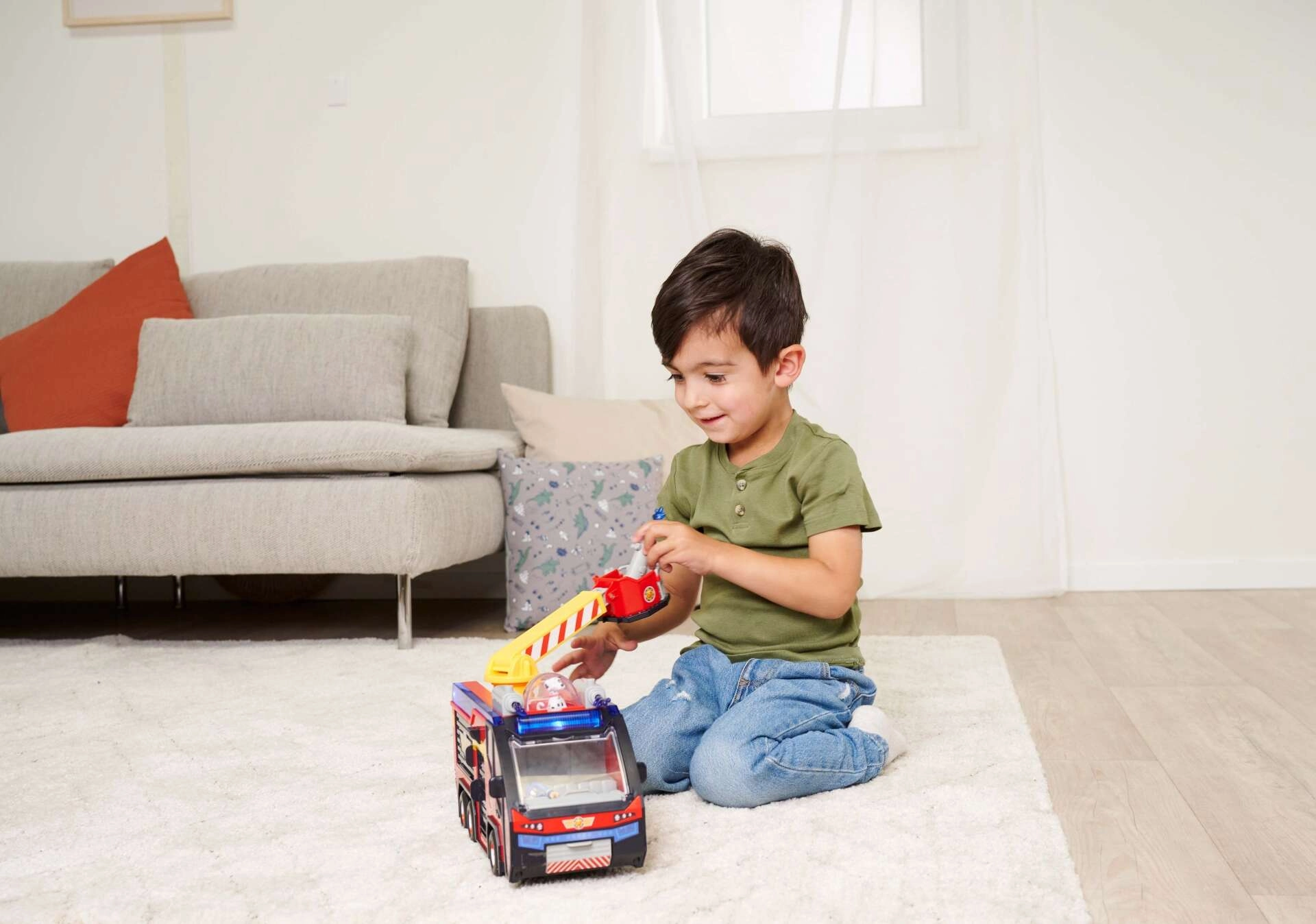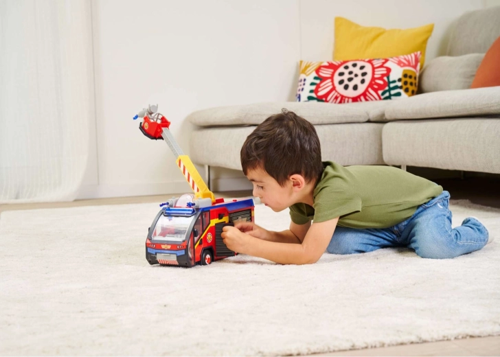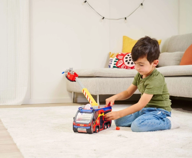 - Svjetlosni i zvučni efekti: Vatrogasno vozilo ispušta realistične zvukove i ima spektakularnu 360° rasvjetu koja pruža realističnu pozadinu za igru. Izvlačivi pretinci za alat. Na krovu je otvarajuća kabina za psa.