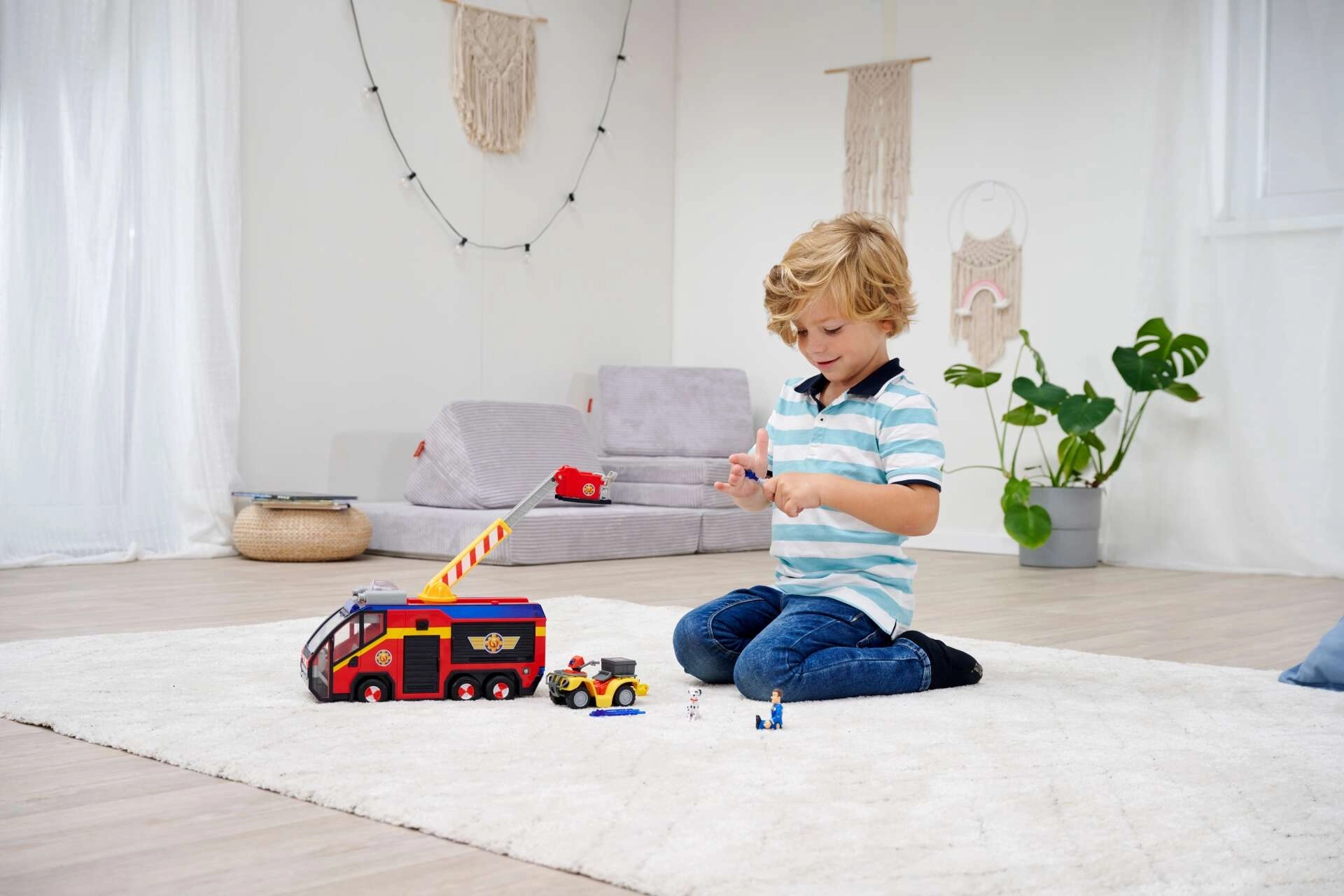 - BOGATA OPREMA: Na raspolaganju je platforma za četverokotač i otvarajući spremnik za pohranu vatrogasnog alata priključenog na Jupiter, tako da možeš savršeno odigrati poznate spasilačke misije iz serije o hrabrom junaku Vatrogascu Samu.