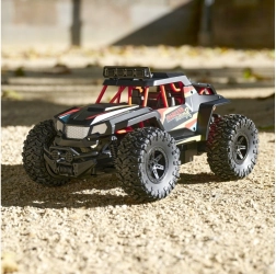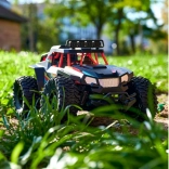 Svoj impresivan izgled duguje ponajprije ogromnim, masivnim gumenim kotačima, zahvaljujući kojima je spreman za svaku avanturu. Utrke po terenu brzinom do 15 km/h ovdje su svakodnevica. Zahvaljujući jasnim svjetlima iznad kabine, na daljinski upravljani automobil svi će gledati i u sumrak.