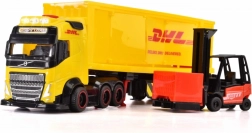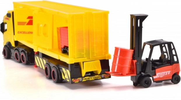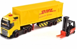 Ovaj detaljno izrađen model teretnog vozila VOLVO u DHL bojama donosi djeci puno mogućnosti za kreativnu igru. Zahvaljujući priloženom viličaru i kutijama lako je inscenirati utovar, prijevoz i istovar – baš kao u stvarnoj logistici.