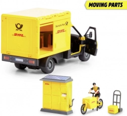 Otkrijte realističan kurirski set s licencom DHL i vozilom VOLVO od Dickie Toys. Set nudi svjetlosne i zvučne efekte, otvarajuća vrata, figuricu kurira, paketomat/box za pošiljke, bicikl i pribor za maštovitu igru. Idealan za razvoj kreativnosti, fine motorike i logičkog razmišljanja djece.