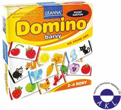 Zabavno slikovno domino marke GRANNAs pomaže djeci od 2 godine učiti boje i nazive životinja. Pojedinačni dijelovi od čvrstog kartona precizno se uklapaju, a igra razvija logičko razmišljanje, finu motoriku i zapažanje. Uključene su upute za 1 ili više igrača te preporuka Udruge kliničkih logopeda Češke.
