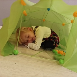 Sagradite vlastitu tajnu bazu, kupolu, tunel ili šator – mašti nema granica. Izdržljive plastične štapiće i čvrsti kugličasti konektori omogućuju stvaranje stabilnih konstrukcija koje se mogu prekriti priloženom zelenom plahtom. Zahvaljujući fluorescentnim slamkama kreacije su atraktivne i pri prigušenom svjetlu.