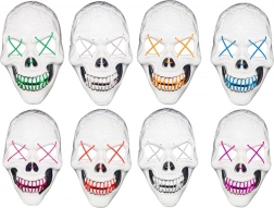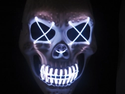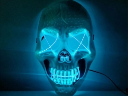 Stvorite jezivo efektan izgled s LED maskom lubanje s izraženim neonskim obrisima očiju i usta. Zahvaljujući laganoj, izdržljivoj plastici i mekoj pjeni s unutarnje strane, maska je udobna i za dulje nošenje. Upravljački okvir za 2× AA baterije lako sakrijete u džep ili ga pričvrstite na hlače.