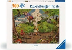 Uživajte u satima zabave i opuštanja s ovim čarobnim Ravensburger puzzleom od 500 dijelova koji prikazuje vješticu koja skače preko kotla u šarenoj šumi.