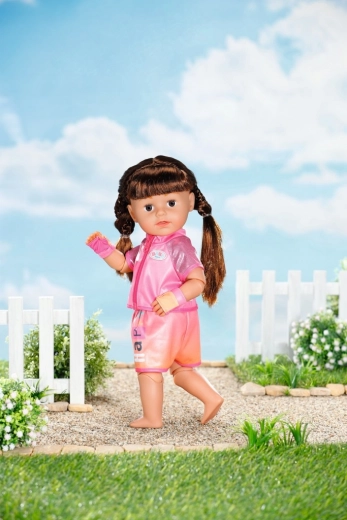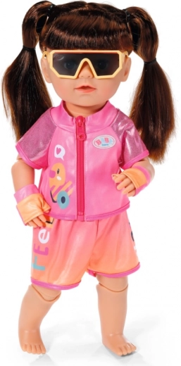 Ovaj biciklistički komplet za lutke BABY born (43 cm) pretvara svaku vožnju na biciklu ili triciklu u pravo avanturističko iskustvo. Lagani gornji dio na patentni zatvarač s printom i usklađene kratke hlače sa širokim elastičnim pojasom jamče udobnost pri svakom pokretu. Rukavice i velike sunčane naočale upotpunjuju sportski izgled i štite oči lutke tijekom „sunčane“ vožnje.