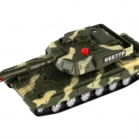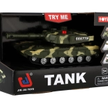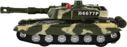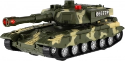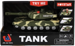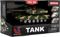 Krenite u akciju s robusnim plastičnim tenkom na inercijski pogon koji nakon guranja živahno juri naprijed. Rotirajuća kupola s dugom cijevi i realistični detalji podvozja izmjenjuju se s efektnom svjetlosnom i zvučnom pratnjom koja pojačava svaki scenarij igre.