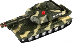 Realistični plastični tenk duljine 20 cm razveselit će male vojnike dinamičnom vožnjom na inercijski pogon, svjetlosnim efektima i zvukom. Zahvaljujući rotirajućoj kupoli i detaljnoj izradi nudi sjajnu akcijsku zabavu kod kuće i na putu. Idealan za djecu od 3 godine.