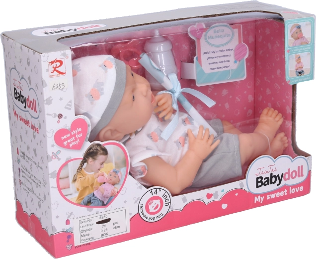 Preslatka beba veličine 34 cm donosi djeci realističnu igru njege. U pakiranju se nalaze bočica, duda i rodni list, zahvaljujući kojima će se djeca odlično zabaviti i razvijati empatiju i maštu.