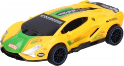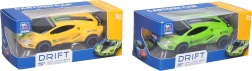 Drifting trkaći autić na zamašnjak dimenzija 15,5 × 8 × 4 cm. Dovoljno ga je pogurati, a zahvaljujući okomito postavljenom kotačiću u sredini podvozja sam drifta. Dostupno u 4 boje – plava, zelena, narančasta, žuta; zabava bez baterija.