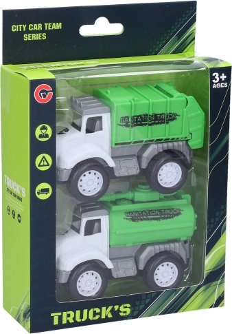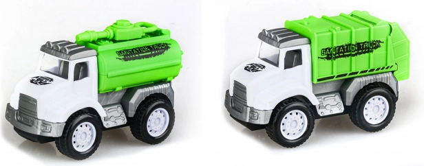 Set od 2 čistaća vozila na potisni pogon. Dimenzije 10,3×5×6,8 cm, bez baterija. Sjajna zabava za djecu i kreativnu igru s realističnim vozilima.