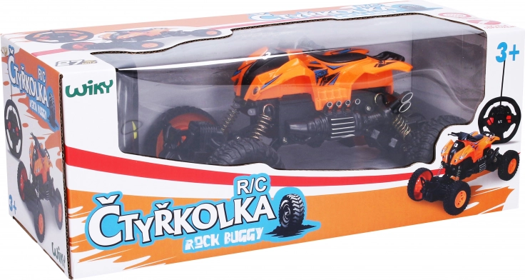 Model je opremljen praktičnim prekidačem ON/OFF na donjoj strani četverokotača za brzo uključivanje i isključivanje. Dovoljno je umetnuti baterije i zabava može početi. Zahvaljujući izdržljivoj konstrukciji Rock Buggy je prikladan za vožnju po glatkim i blago neravnim podlogama.