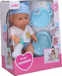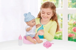 Realistična beba za igru roditelja veličine 30 cm može nakon pijenja iz bočice piškiti i ispušta do 10 različitih zvukova. U pakiranju su noćna posudica, bočica, tanjurić i žličica. Baterije 3× AG13 uključene su u pakiranje.