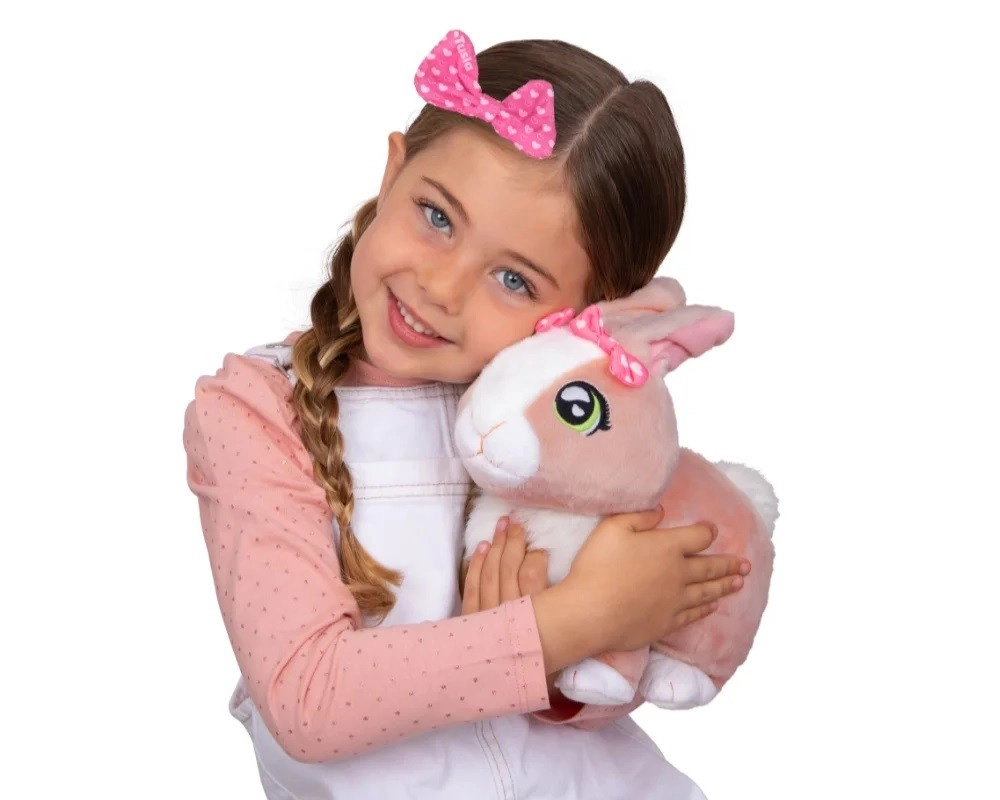 Mekana bež dlaka, velike zelene oči i ružičasta mašnica čine zeku idealnim partnerom za maženje i igru.