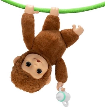 Baby Monkey Mango mekana je na dodir i ugodna za maženje. Doživite zabavu s Baby Monkey tako što ćete se s njom igrati glavom prema dolje, hraniti je bočicom ili promatrati kako sisa palac.